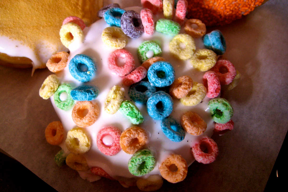 Froot Loops donut. CC by 2.0–photo by Carolyn Coles.